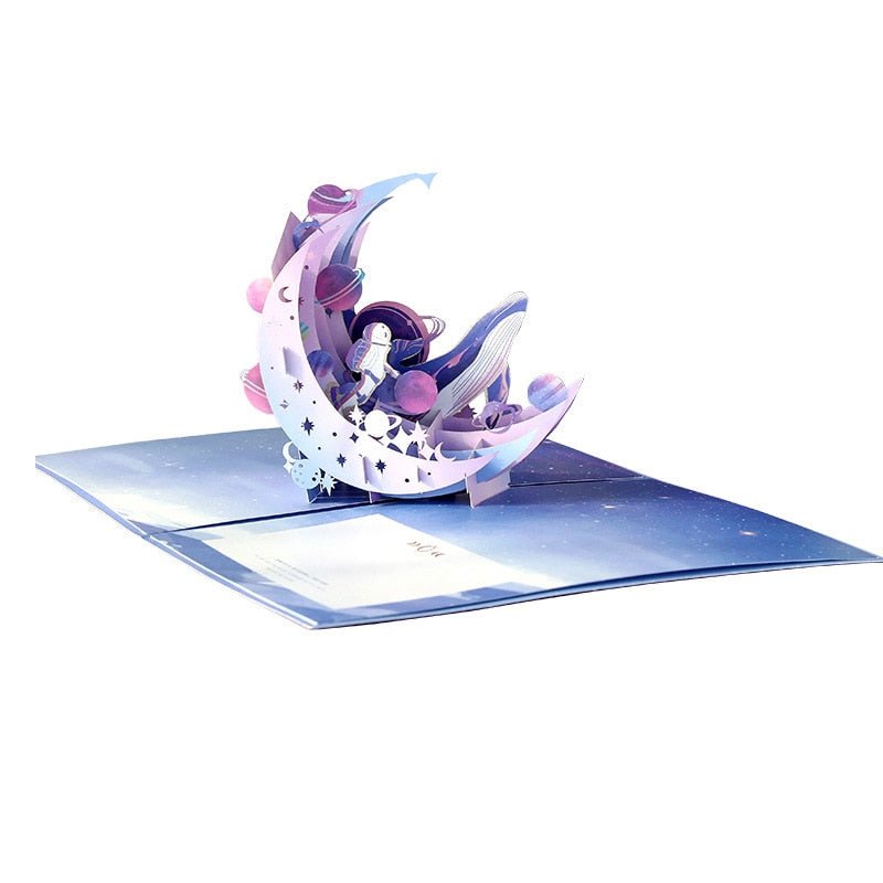 3D Stereo Purple Galaxy Whale Space Greeting Card