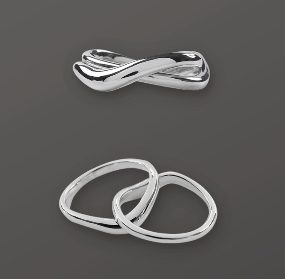 So beautiful in it's wavey simplicity, you have two silver rings joined in union.